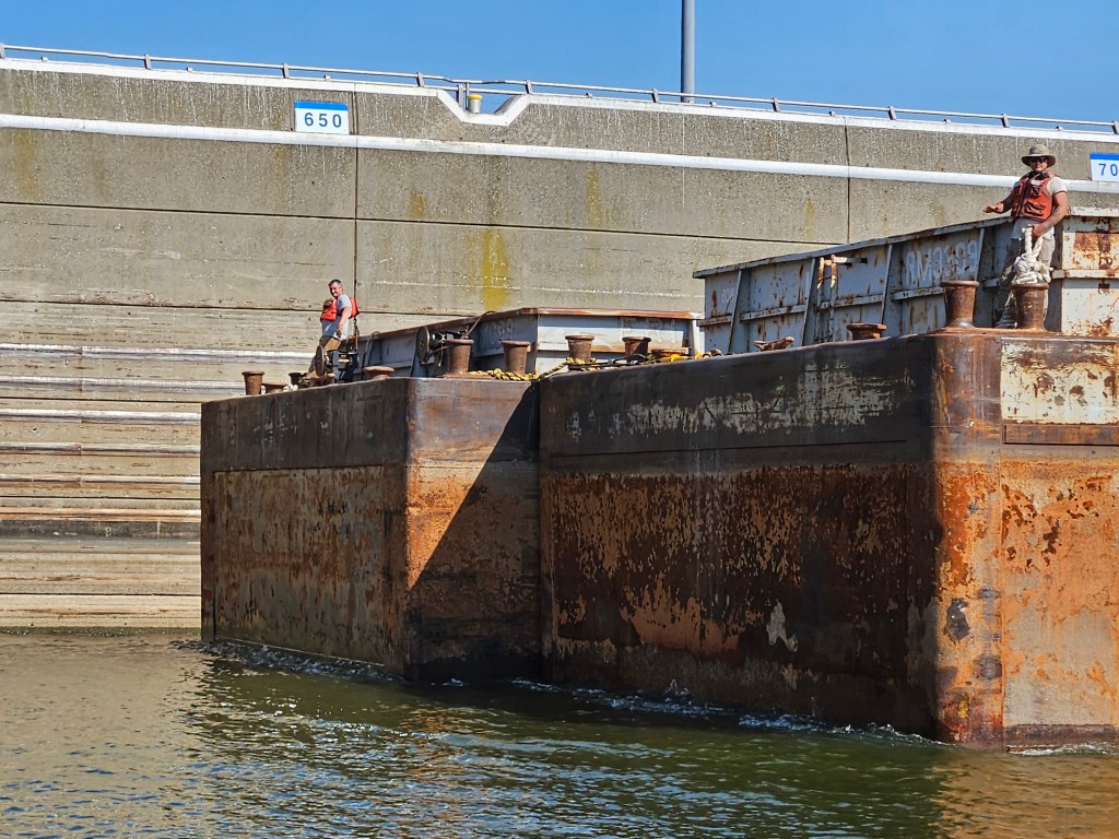Arriving to the lock, we passed 1000-foot barge-trains loaded with costly cargo waiting to get called up.