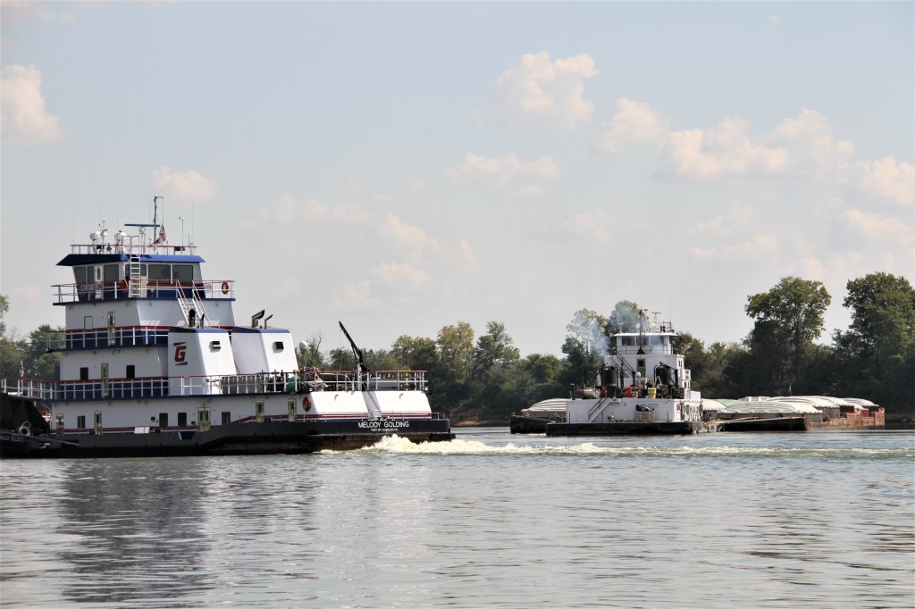 The John T Myers commercial -sized lock has been under repair since July 2023. They estimate it will be closed until the end of September. Until it opens, barges will need to use the 600-foot lock. Tow captains will break up linked barges into smaller sizes, move them into the lock, then back out with the rest of the barges still attached. While the lock lowers or raises the tows wait. When the lock returns empty, they enter the lock with the last of their cargo. When they reach river level the barges are reattached and they carry on to their destinations. This is a time-consuming complicated business and apparently a dangerous time for crewmembers.