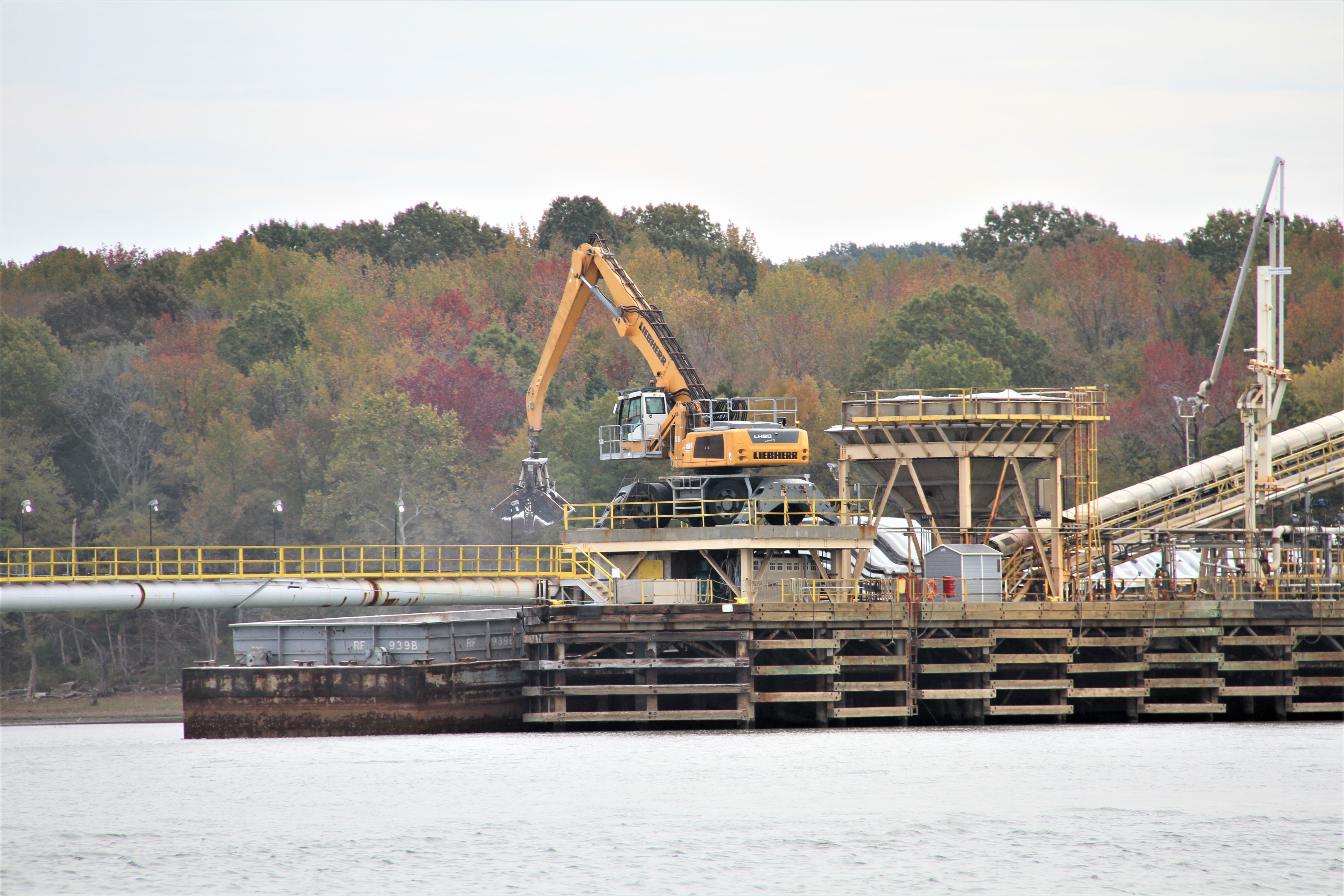 Earlier this year, several barges broke loose from a towboat on the Ohio River. One struck the Louisville and Indiana Bridge pier while two others crashed into the McAlpine Dam site near Louisville Kentucky. Concrete protection surrounds this electric powerline tower to minimize damage from such an accident.