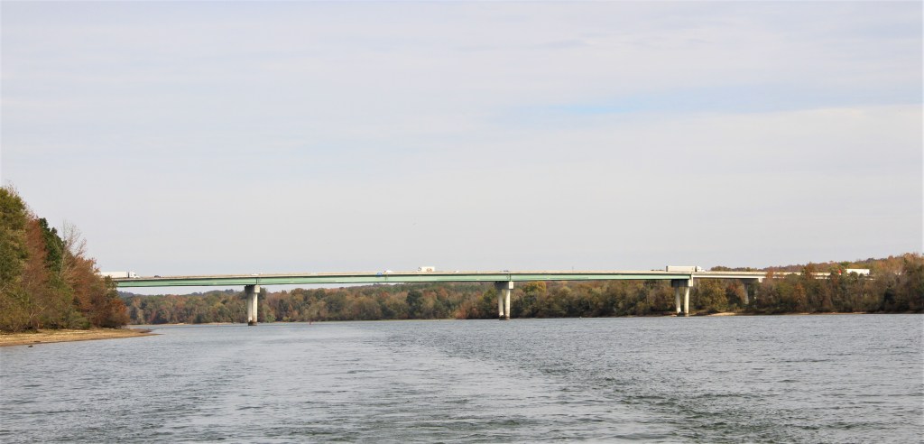 Oct. 24; mile 149; Today’s run: 56 miles. (Total accumulated miles since leaving Nashville was 284 river miles.  Double Island is located 100 road miles from Nashville!)