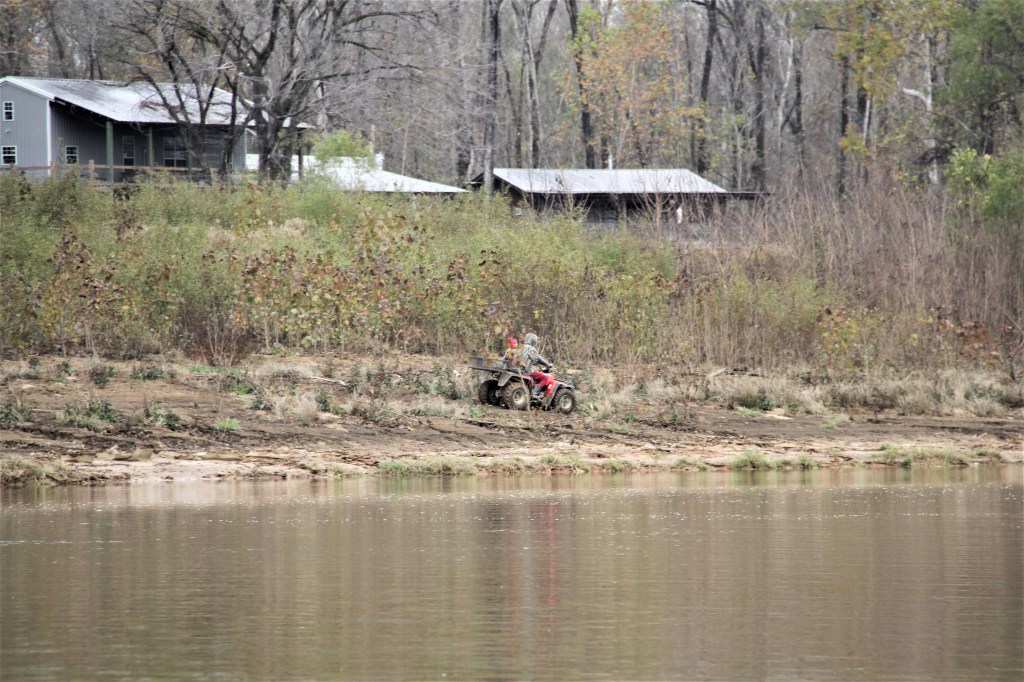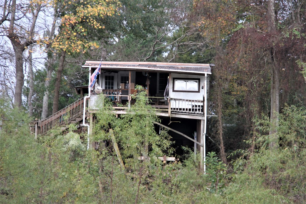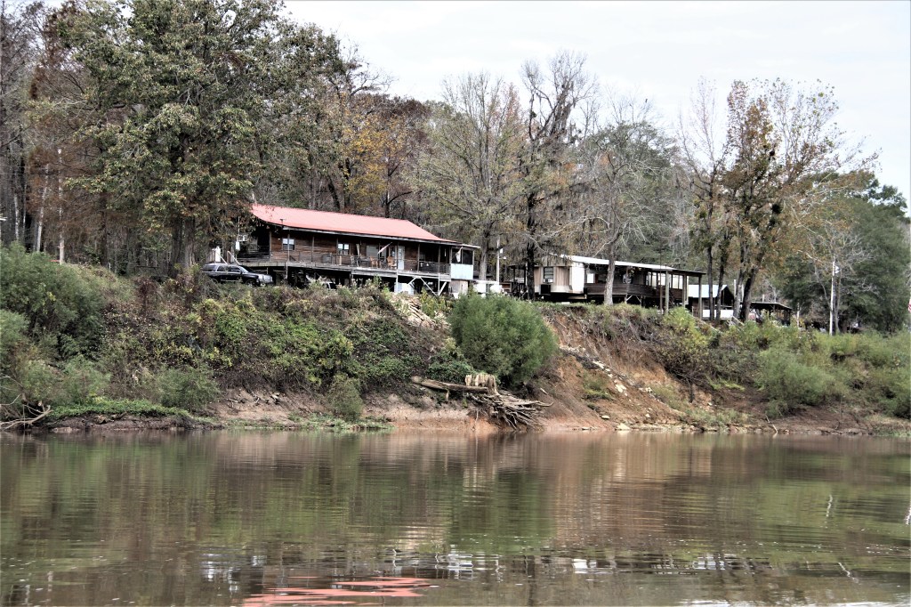 Before going to bed, we noticed a distant spotlight searching the shoreline from a boat. What were these people searching for? A few days later, we learned that they could have been hunting for wild pigs. * In the morning, we heard several gun shots. Maybe a firing range I thought. But the sounds came from opposite directions. The gunshots must have come from hunters, which isn’t surprising because here in Alabama, camouflage clothing was as common to see as blue jeans.