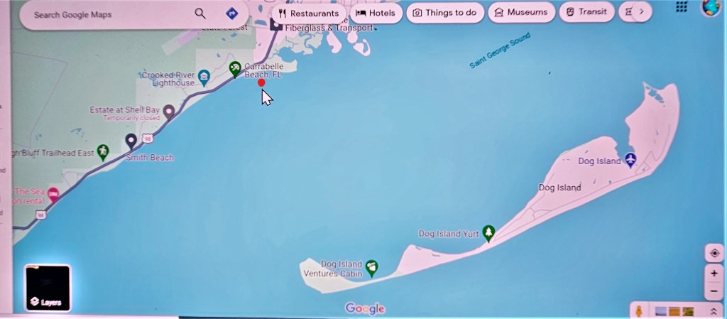 Apalachicola, Carrabelle and nearby Dog Island, are the most popular staging locations for crossing the Gulf of Mexico to the Florida Peninsula.
