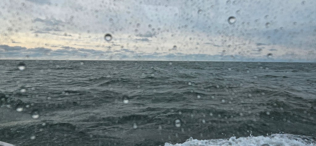 Seas were 3-4 feet on the port stern with occasional 5 footers rolling underneath the hull lifting us to new levels. They would always stimulate me to say; “Whoa!”