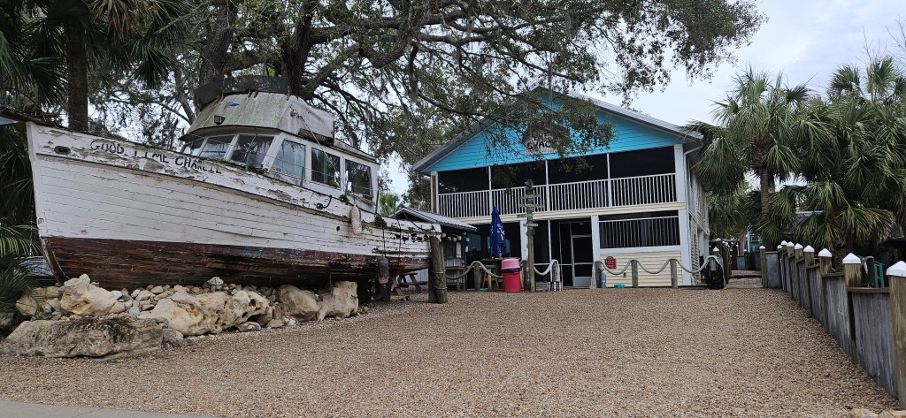 The name Steinhatchee is derived from the Native American “estenn hatchie” ,‘river of man’: population 537. We could walk to the village from the marina but there was no ‘down-town’ in the village, just a few buildings strung along a county road.