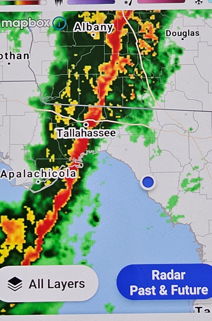 The day after arriving, a storm warning was issued for the area. The location of Steinhatchee is represented by the blue dot on the map below.