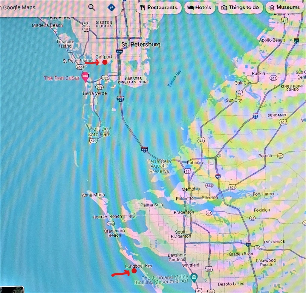 Gulfport: Jan 14, 2024; mile 114.5; Day’s run: 25 miles. The day we left Clearwater for Gulfport, it was cool enough, that we donned hats and gloves in preparation for the trip.