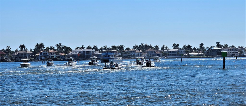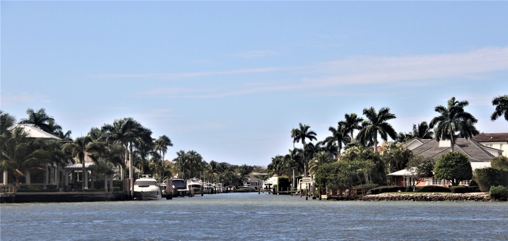 When our time was up at the Docks, we found room at the Naples Boat Club just down the way. (Poor Mike was in a constant state of search, call, and reserve.) We stayed at the Naples Boat Club 4 days* which put us in the path of the jets again but offered protection from the wakes of the speeders on the water. When our time expired, City Docks accepted our reservation again. So back we went.