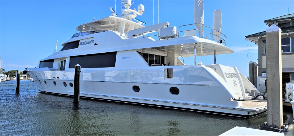 It takes 2.5 hrs to fill this yacht with 6000 gal. of fuel. They often rendezvous with an offshore tanker for the job.