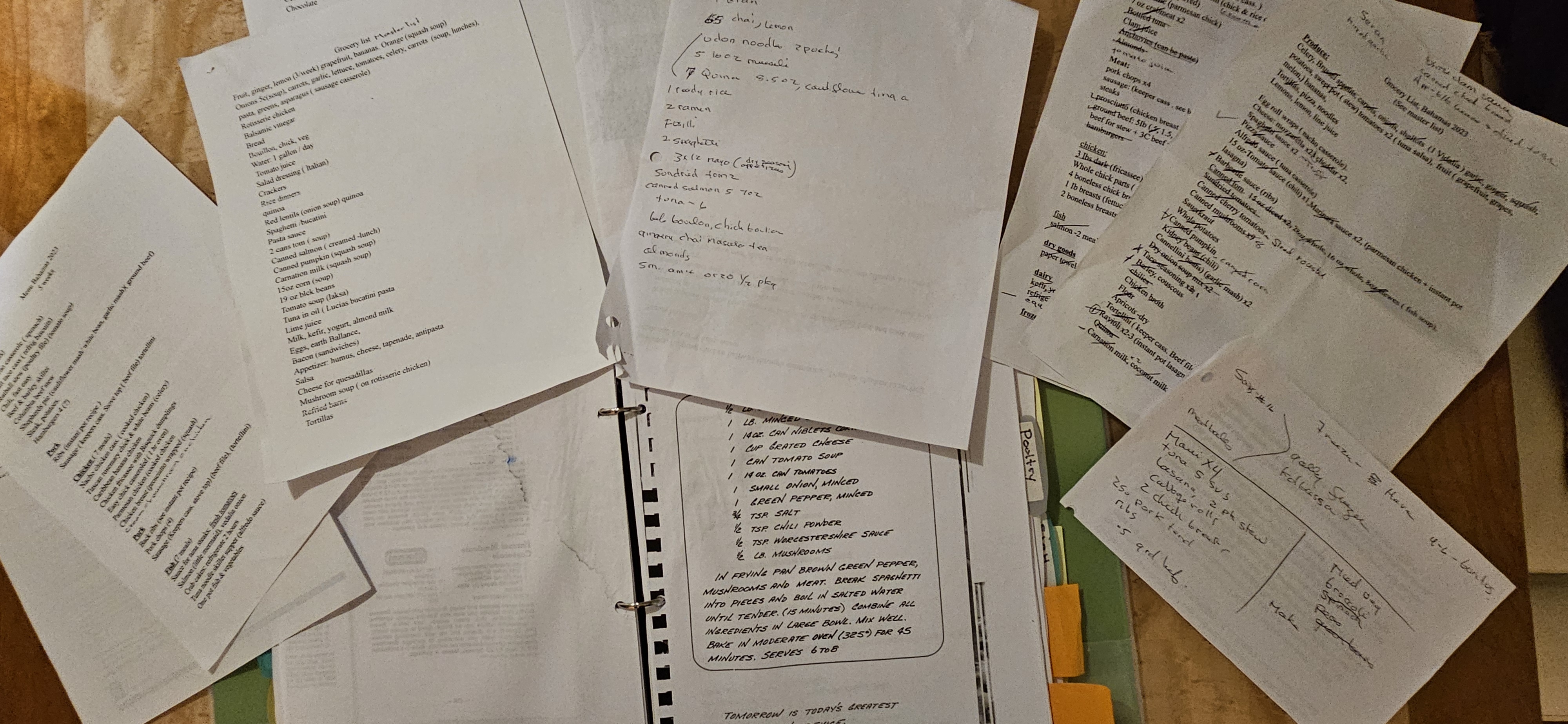I knew how many cans of tomato products I would need, how many packages of cereal, the number of cartons of LTH milk, which can be stored at room temperature for long periods, and so on.
