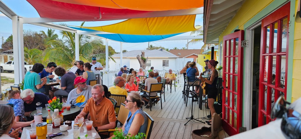 A cruiser’s radio network, probably stationed from an owner’s boat, had organized events for those who stopped there. Dinners at restaurants, social get-togethers at bars, (there are several), and beach-time activities, games and other fun competitions, organized by volunteer boaters were announced.