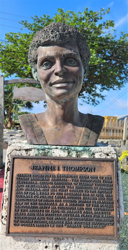 The garden contains 24 busts of prominent Bahamians, each from a different island, many descendants of Loyalists or slaves who played a significant roll in the development of the Bahama Islands: teachers, lawyers, government officials, boat builders, sea captains, businessmen, and others, multi-talented in farming, carpentry, telegraph management, preaching and numerous other abilities. Jeanne Thompson, (sculpture), was a descendent of a slave family, a contemporary playwright and the country’s second female attorney.