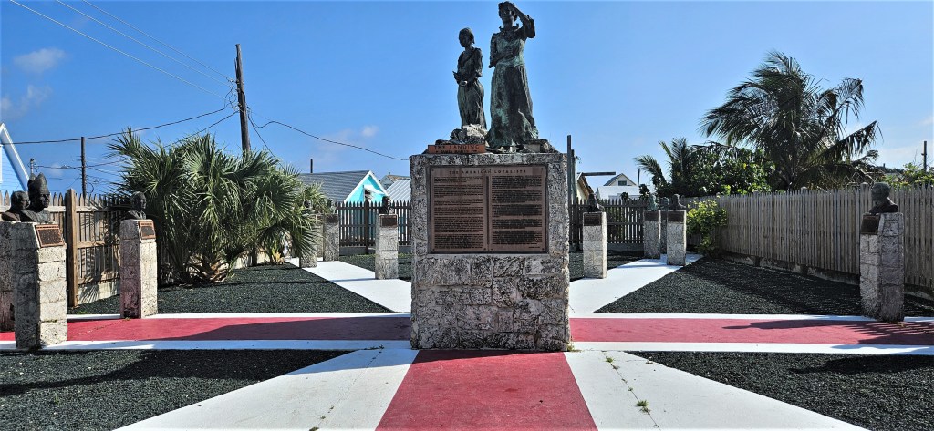 LOYALIST MEMORIAL SCULPTURE GARDEN, New Plymouth: A tribute to the Loyalists and slaves who settled The Abacos. The garden is laid out in the form of a Union Jack.