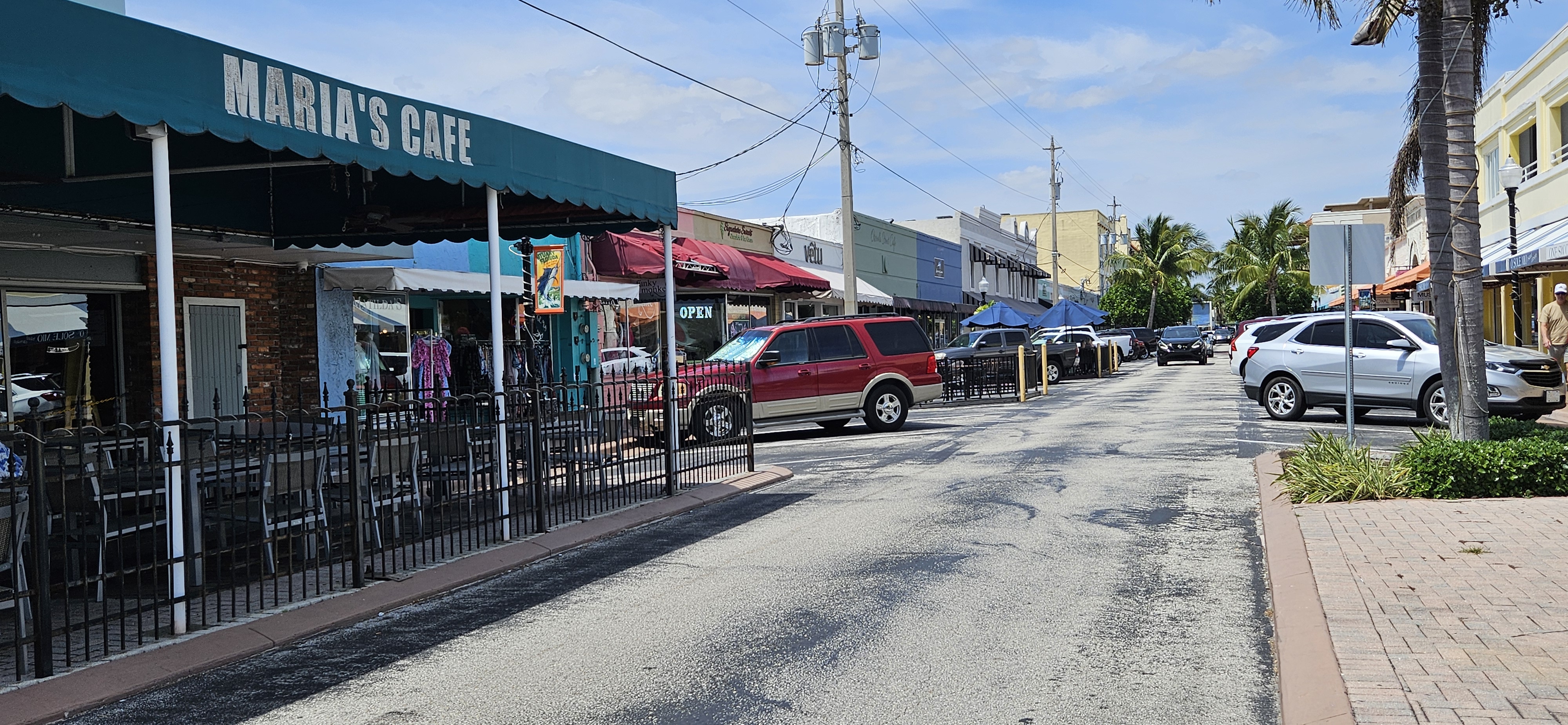 From Sunset Marina: ($4.50/ft + $30 for power), we could walk along the river into the town of Stuart, population 20,000.