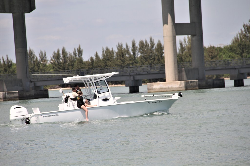 I made a quick turn out of the line-up, crossed the northbound lane in front of an oncoming boat and while steering straight at a fisherman in a runabout, narrowly missed hitting our stern on the bridge abutment. As frantic as the situation was, the fisherman’s presence calmed me. He looked so peaceful with a rod in his hand . (I’m not so sure the fisherman would have had the same thought).