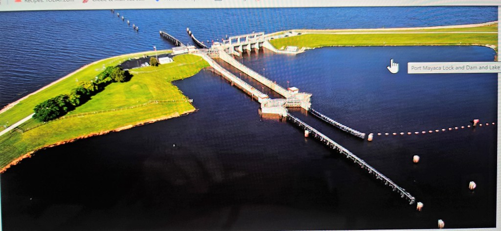 History of the Florida Everglades, and Okeechobee Waterway: Shortly after Florida became a state in 1845, its leaders began to consider draining the swampy areas of south Florida for farmland as an inducement to settlement. Five years later, Florida received title to all swamp and overflowed lands within its borders, approximately 15 million acres. But the state did not have the funds to undertake the drainage. Five years later, a wealthy Englishman, Hamilton Disston, agreed to drain the Everglades for half the acreage he could reclaim.* One of his projects was to improve the Caloosahatchee River and connect it with Lake Okeechobee by a canal which enters the lake near Moore Haven. In the early 1900s, the town of Moor Haven grew up around the entrance to the canal. By this time, the state was responsible for drainage, and in 1917-18, it constructed a lock at the canal entrance. There are now 5 locks on the canal.