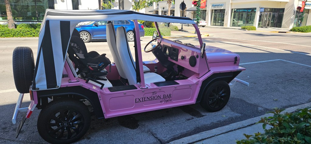 It’s no surprise that you can spot numerous luxury cars on the streets of Naples. Custom-built electric golf carts have become popular for getting around town.