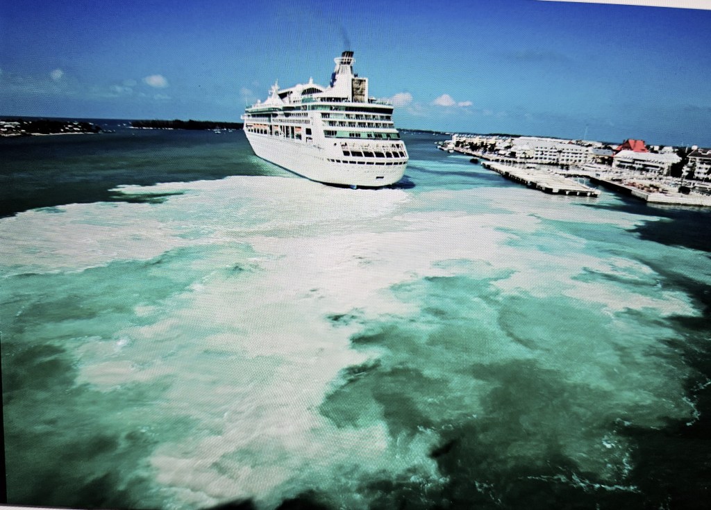 Our diver hadn’t remembered his numbers exactly the way he had read them. A year-long study carried out by Key West College found that the sediment stirred up by cruise ships arriving and leaving, “often reached levels above what hurricanes like Helene and Milton generate when they pass by.” This took place 32 times during the study and therefore, was similar to having 32 hurricanes visit the harbour in that year.