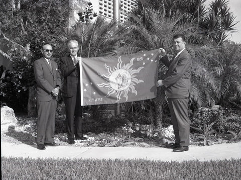 The American flag was taken down and a new flag, designed to represent the new Conch Republic, was raised. (Picture courtesy of Monroe County Library.)